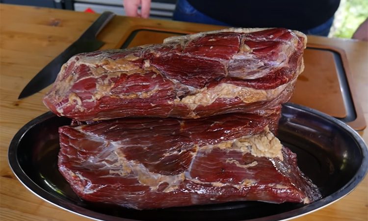 После вызревания нарезайте мясо тонкими ломтиками и подавайте.