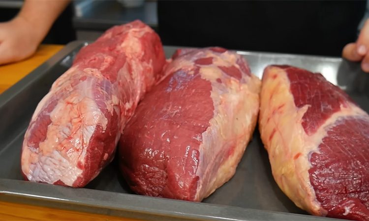 Говядину используйте без большого количества жира и жил, лучше всего подходят глазной мускул или тонкий край. Куски зачистите от явных жилок и плотного жира, но обрезки не выбрасывайте, их можно заморозить для бульона. Подготовленные куски нашпигуйте рассолом с помощью кулинарного шприца, вводя жидкость глубоко в мясо и не экономя объем, поскольку это ускоряет и выравнивает посол. После инъекции куски заметно увеличатся в объеме, это нормально.