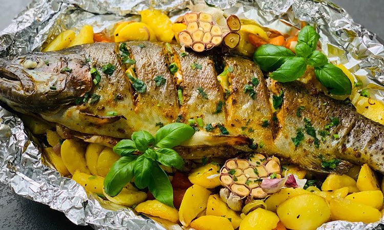 Форель получается сочной, ароматной и легко разделяется, а овощи пропитываются соком и подаются как полноценный гарнир.