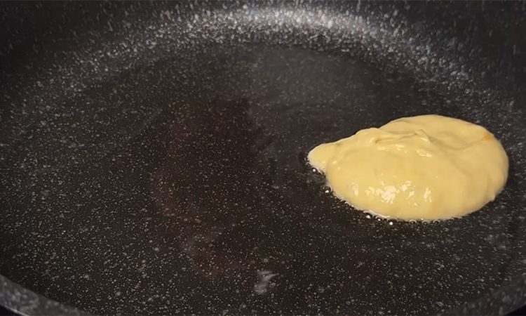 Разогрейте сковороду с небольшим количеством растительного масла на среднем огне, а затем убавьте нагрев до умеренного, чтобы оладьи пропекались равномерно. Столовой ложкой выкладывайте небольшие порции теста на горячую поверхность, помогая второй ложкой отделять массу.