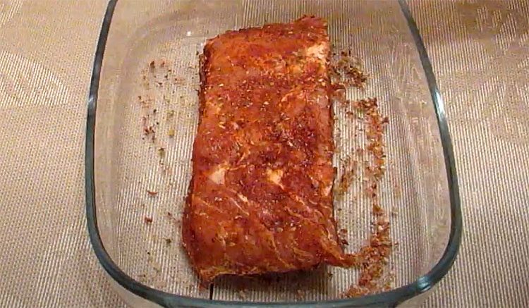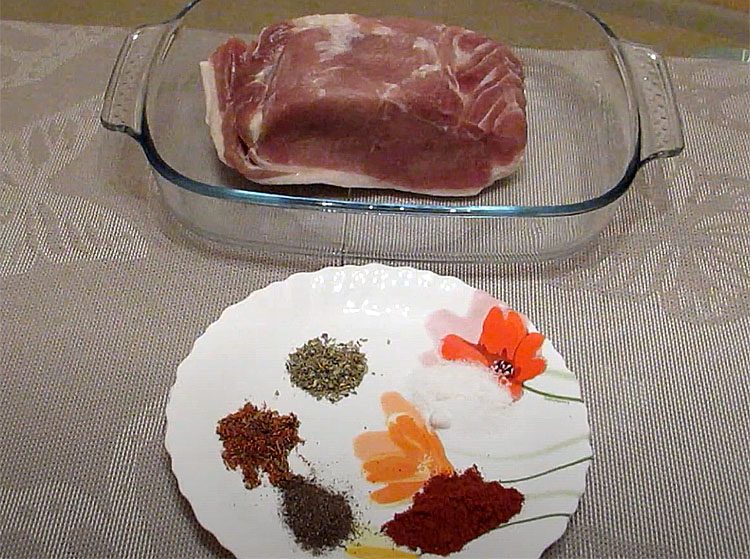 1. Свинину промойте под холодной водой, обсушите бумажными полотенцами и при необходимости зачистите от лишних пленок. В небольшой миске смешайте черный перец, орегано, приправу для мяса, паприку и соль, добиваясь равномерного распределения специй.