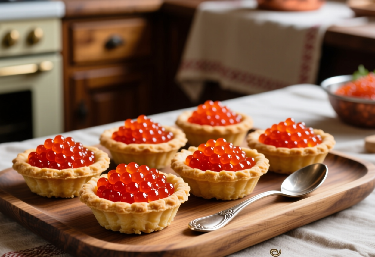 Тарталетки — одна из самых популярных закусок к Новому году. Каких только начинок не существует для этой мучной корзиночки! Яйца и сыр, грибы и курица, красная рыба и творожный сыр, креветки и помидоры, а также всевозможные сладкие сочетания. Но в этом году мы предлагаем подать к столу тарталетки с самой крутой начинкой, которая готовится в считанные секунды, а выглядит просто роскошно.