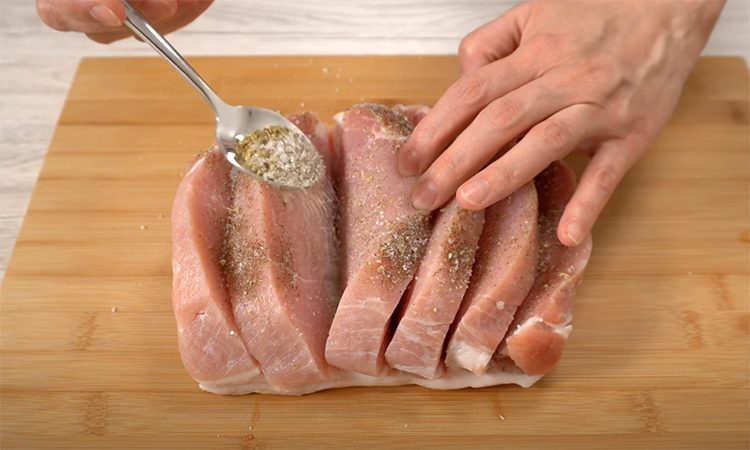 1. Сделайте глубокие, но не сквозные надрезы по всей поверхности куска (примерно 3–5 см глубиной). Вотрите в мясо соль, перец и итальянские травы. Это не только придаст вкус, но и поможет специям проникнуть внутрь куска. Если хотите, можно оставить мясо мариноваться на 30–60 минут для усиления вкуса.