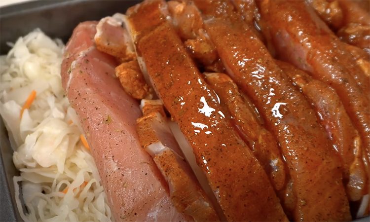 Дайте мясу постоять 5–10 минут после духовки – соки равномерно распределятся, и мясо станет ещё сочнее. Нарежьте порционными кусками и подавайте с капустой или любимым гарниром.