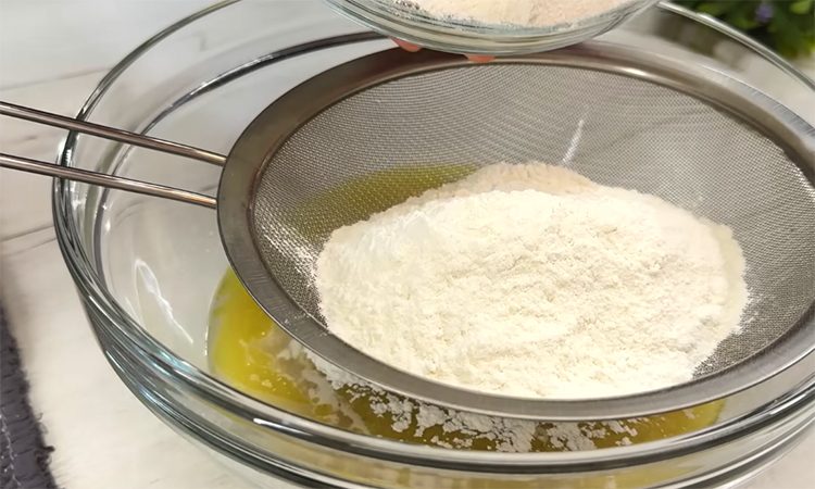 В глубокую миску влейте теплую воду, всыпьте сахар и дрожжи, после чего тщательно перемешайте до полного растворения сухих компонентов. Добавьте оливковое масло и введите первую порцию муки весом около 250 граммов, замешивая жидкое тесто до исчезновения комочков. Накройте емкость пленкой и оставьте на тридцать минут, чтобы опара покрылась пузырьками и активировалась. Всыпьте оставшуюся муку и соль, перемешайте массу и снова оставьте в покое на полчаса под полотенцем.
