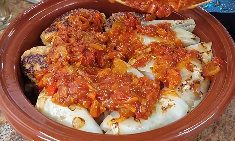 Секрет сочности этих голубцов заключается в том, что рис отваривается всего несколько минут. Благодаря этому крупа не забирает в себя весь мясной сок во время долгого томления в духовке. Начинка получается удивительно мягкой, а добавление обжаренного лука придает ей очень приятный домашний аромат. Капустные листья становятся нежными и легко пропитываются насыщенным соусом, поэтому блюдо буквально тает во рту.