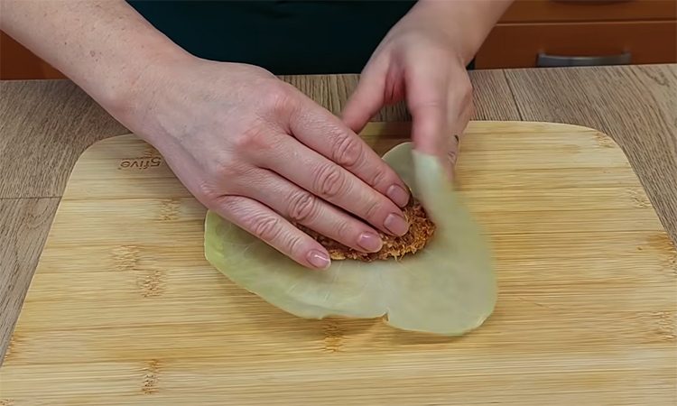 Кочан капусты разрежьте вдоль и припустите листья в кипящей воде несколько минут, пока они не станут эластичными и послушными. Сформируйте аккуратные голубцы, выложив фарш на край листа и плотно свернув его конвертом, пряча края внутрь. На сковороде обжарьте мелко нарезанный лук, тертую морковь и болгарский перец, затем влейте томаты и выпаривайте жидкость до загустения соуса.