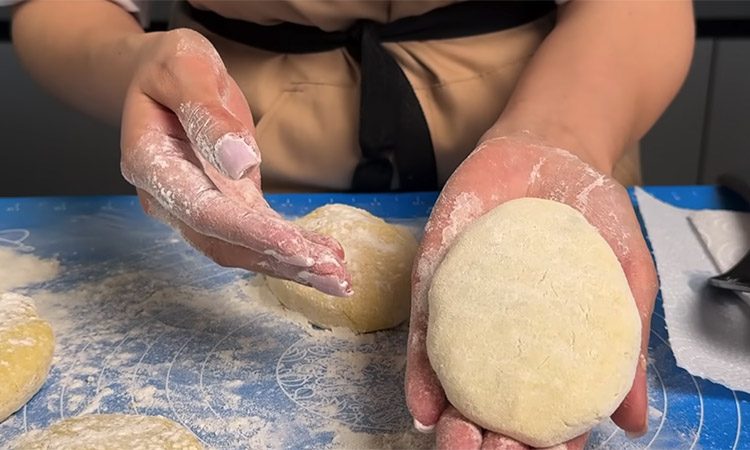 Припылите руки и рабочую поверхность мукой, возьмите столовую ложку картофельного теста и сформируйте на ладони лепешку. Выложите в центр ложку остывшей начинки, аккуратно защипните края, формируя продолговатую котлетку, и обваляйте ее в муке.