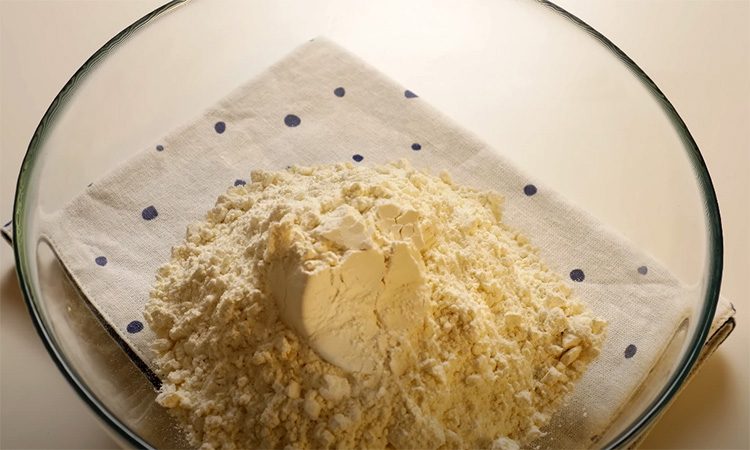 Снимите посуду с огня, переложите массу в миску и дайте ей немного остыть. Начните вымешивать теплое тесто руками, работая с ним в течение десяти минут до достижения абсолютной гладкости и мягкости. Накройте тесто салфеткой и оставьте его отдохнуть на столе в течение десяти минут для расслабления клейковины.