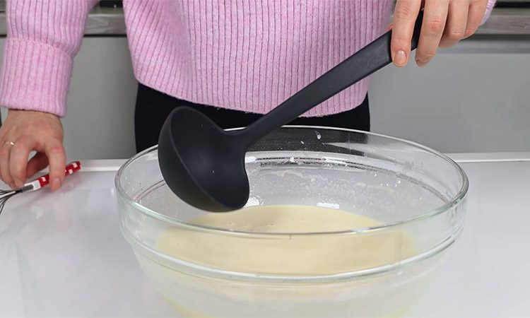Хорошо разогрейте сковороду, смажьте ее каплей масла перед первым блином и перемешивайте тесто перед каждым зачерпыванием.