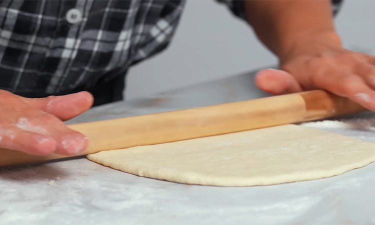 В глубокой миске соедините слегка теплый кефир с солью, сахаром и одним яйцом, тщательно перемешав массу венчиком. Постепенно всыпьте просеянную муку вместе с разрыхлителем и замесите мягкое, слегка липкое тесто, стараясь не забивать его лишней мукой. Накройте тесто полотенцем и дайте ему отдохнуть около пяти минут.