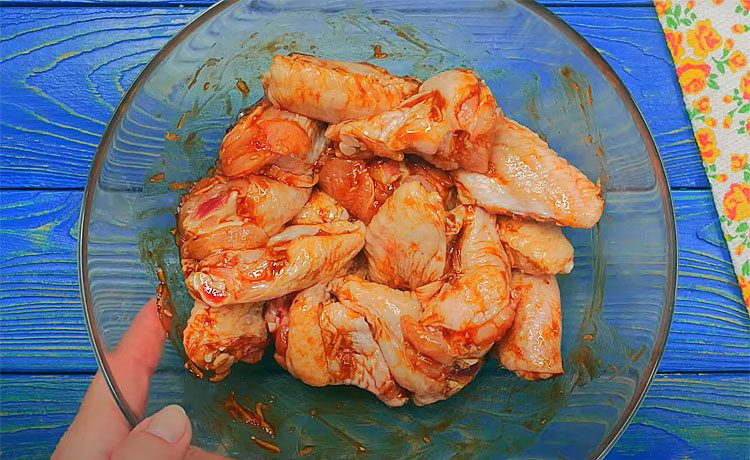 3. Накройте миску крышкой или пленкой. Поставьте в холодильник минимум на 2 часа (лучше на 4–6 часов), чтобы крылышки хорошо пропитались ароматами. Если есть время — можно оставить на ночь.