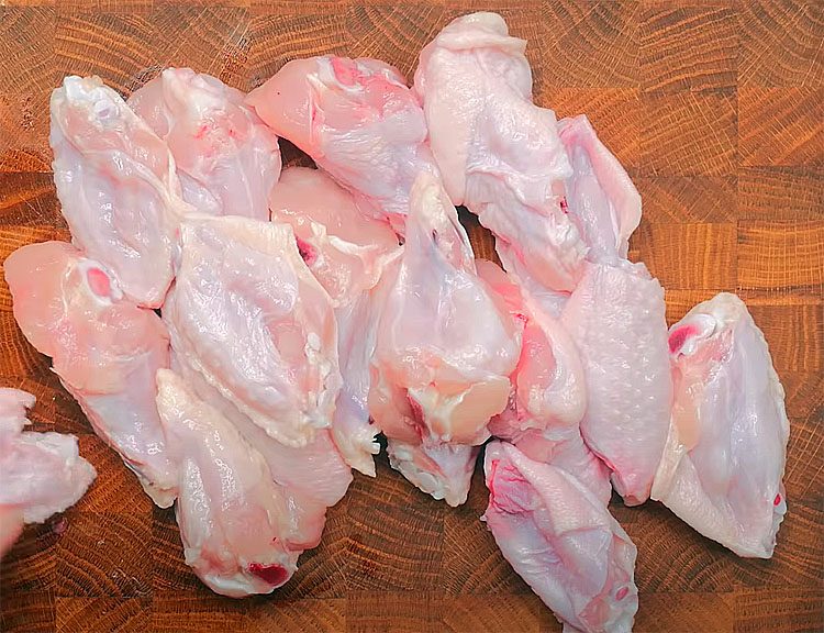 1. Разрежьте крылышки по суставу на две части — «брюшко» и «кончик». Кончики можно оставить для бульонов или убрать, если хотите только мясные кусочки. Промойте крылышки и обсушите бумажным полотенцем, чтобы маринад лучше впитался.