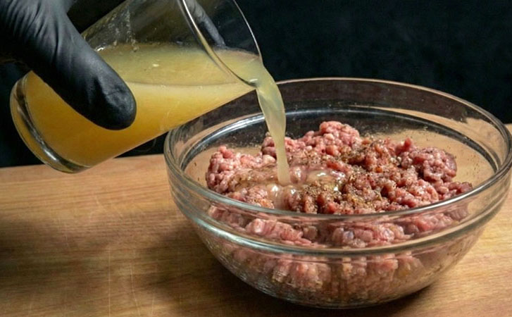 Сочные чебуреки можно приготовить всего за 10 минут, просто не нужно тратить времени на тесто. Вместо него удобнее взять обычный тонкий лаваш, по вкусу результат будет тот же. Особую роль в этом рецепте играет начинка: в фарш нужно добавить луковый сок, чтобы мясо стало сочнее и мягче.
