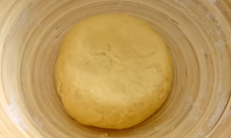 1. В большой миске тщательно взбейте яйца венчиком до однородной, слегка пенистой массы. Добавьте щепотку соли, обычный сахар и ванильный сахар, продолжая взбивать, чтобы сахар частично растворился. Медленно влейте масло, постоянно помешивая, чтобы оно равномерно распределилось в яичной смеси. Постепенно добавляйте просеянную муку с разрыхлителем, аккуратно перемешивая ложкой или лопаткой, чтобы тесто получилось мягким, эластичным и не слишком плотным. Готовое тесто заверните в пищевую пленку и уберите в холодильник на 20 минут — это облегчит раскатку и придаст тесту упругость.