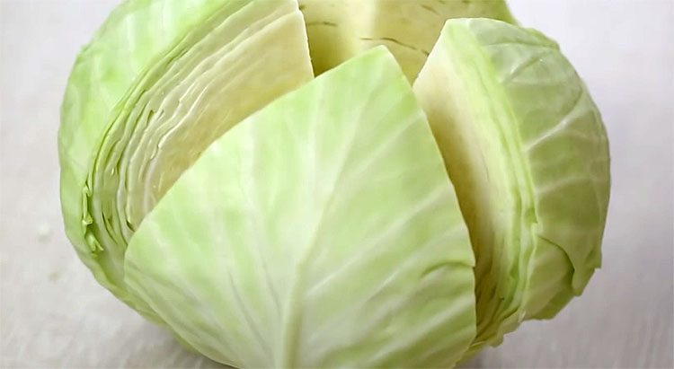Режим кочан на четыре части и отправляем в рукав. Запеченная капуста в духовке