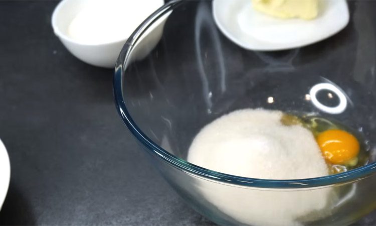 Измельчите миндаль в чаше блендера до состояния мелкой крошки и пересыпьте в глубокую миску. Добавьте к орехам мягкое сливочное масло, сахар, яйцо и щепотку соли, после чего взбейте массу миксером до пышности. Выложите в полученную смесь сметану и аккуратно перемешайте все компоненты лопаткой. Соедините муку с разрыхлителем и просейте ее в миску, замешивая сначала мягкое, а затем пластичное тесто руками.