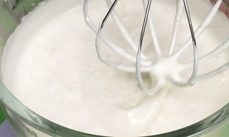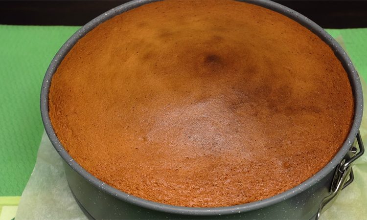 Сначала нужно испечь бисквит, для этого взбейте яйца с солью до пышности, постепенно добавляя сахар и ванилин. В светлую густую массу аккуратно введите муку с разрыхлителем и выпекайте в форме при 180 градусах около 30 минут. Готовый бисквит должен полностью остыть, после чего его лучше подержать в холоде и разрезать на три равных коржа.
