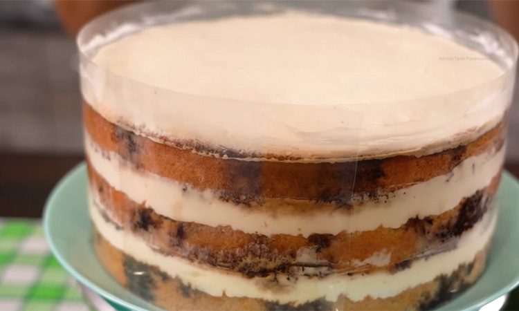 Для пропитки заварите крепкий кофе и дайте ему остыть до комнатной температуры. Для крема взбейте очень холодные сливки с сахаром до мягких пиков, затем добавьте маскарпоне и работайте миксером еще пару минут до густого однородного состояния. Начните собирать торт, выкладывая первый корж и щедро смачивая его кофе.