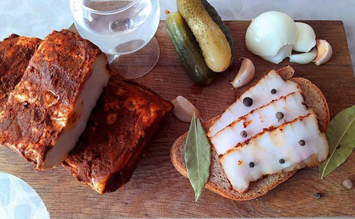 Перед подачей нарежьте деликатес тонкими слайсами и подавайте с черным хлебом.
