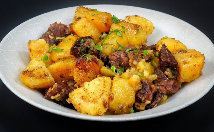Медленное томление в казане меняет структуру говядины, делая ее мягкой и рассыпчатой, а картофель — пропитанным мясным соком и сливочным маслом. При этом активное время приготовления занимает всего 15 минут: укладываем все слоями и отправляем на огонь. Мясо получается нежнейшим, даже самая капризная говядина томится до состояния, когда ее буквально можно есть губами.