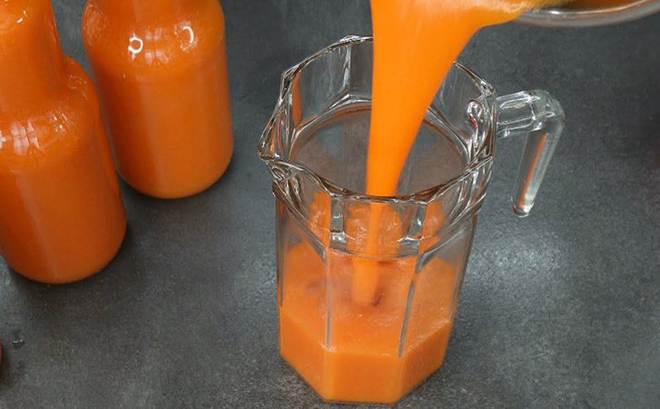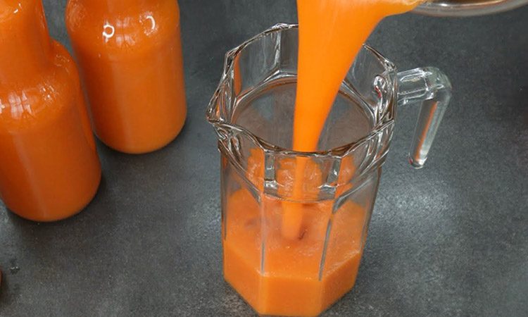Влейте еще немного горячей кипяченой воды, если сок кажется вам слишком густым, и хорошо перемешайте. Для длительного хранения добавьте в горячий напиток щепотку лимонной кислоты и разлейте по стерилизованным банкам. Если планируете выпить сок сразу, просто перелейте его в бутылки и обязательно уберите в холодильник.