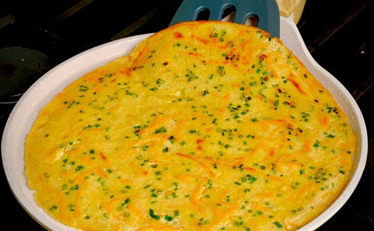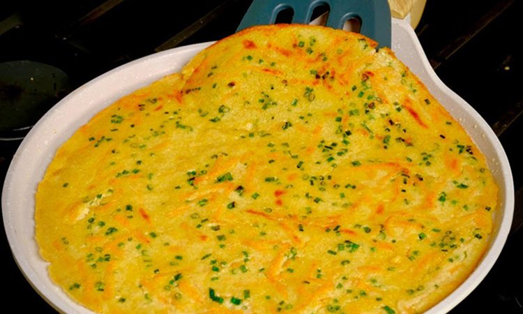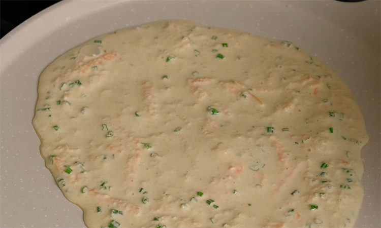 Разогрейте сковороду на среднем огне, слегка смажьте ее растительным маслом и распределите его тонким слоем с помощью бумажного полотенца. Вылейте тесто на сковороду и разровняйте в виде лепешки. Готовьте на среднем огне около 2 минут, затем переверните и подрумяньте вторую сторону до легкой золотистой корочки.