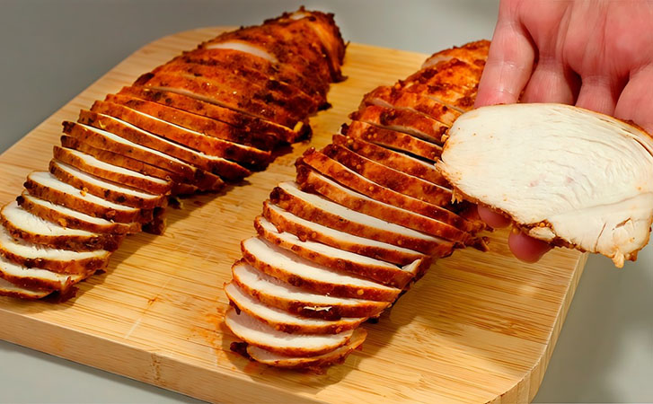 Многие хозяйки боятся готовить куриную грудку, потому что она часто получается сухой и безвкусной. Но этот рецепт перевернет ваше представление о диетическом мясе: филе получится сочным и ароматным. Оно подойдет не только как горячее, но и в нарезку на закуску и бутерброды.