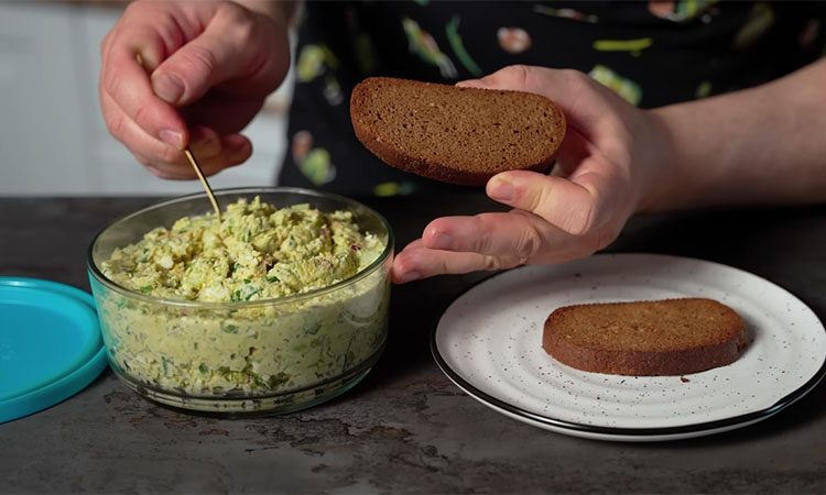В качестве заправки используйте греческий йогурт для максимальной пользы или немного майонеза, если хотите более насыщенный вкус. Тщательно перемешайте все ингредиенты до однородности. Готовую массу переложите в герметичный контейнер — в холодильнике она может храниться до 3-4 дней. Для подачи поджарьте ломтик цельнозернового хлеба в тестере или на сухой сковороде и щедро нанесите намазку.
