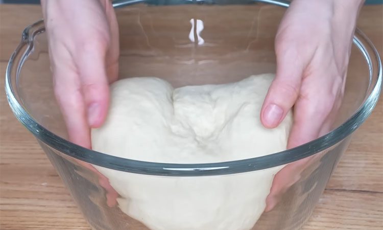 Когда тесто соберется в единый комок, выложите его на стол и вымешивайте до тех пор, пока оно не перестанет прилипать к рукам и поверхности. Поместите готовое тесто обратно в миску, накройте полотенцем и оставьте подниматься в теплом месте на один час.