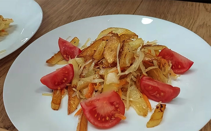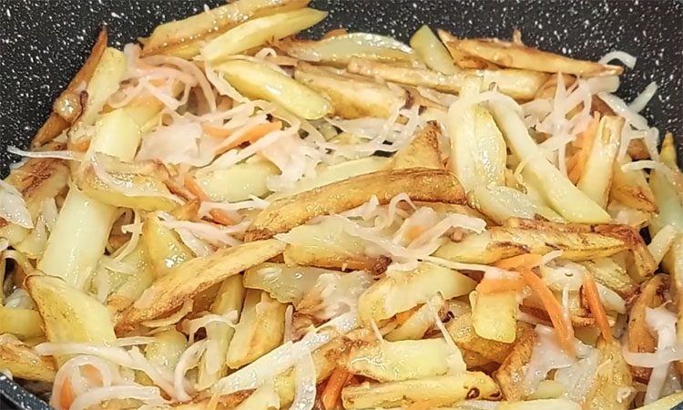Жареная картошка и квашеная капуста — настоящая классика домашней кухни, которая особенно актуальна в пост или когда хочется чего-то простого и понятного, без лишних хлопот. Секрет успеха здесь в правильной подготовке картофеля: его нужно обязательно обсушить перед жаркой, чтобы получилась золотистая корочка. Квашеная капуста добавляется в самом конце, она не должна развариться, ей достаточно просто прогреться и отдать свой аромат картофелю. В итоге получается яркое, ароматное и очень бюджетное блюдо.