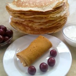 Дрожжевые блины с начинкой из вишни и сметаны