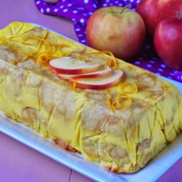 Оригинальный рецепт с двумя начинками на выбор: творожной и яблочно-ореховой. А к блинам можно подать ванильный соус.
