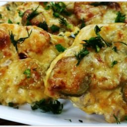 Прекрасный вариант низкокалорийного ужина из кабачков понравится даже тем, кто не следит за фигурой. Это блюдо замечательно съедается как в горячем виде, так и в холодном.