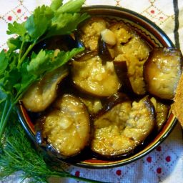 Шикарная, пикантая, остренькая баклажановая закуска! Хороша и в горячем, и в холодном виде. В холодильнике спокойно простоит 3 дня, что очень удобно, т.к. можно заранее приготовить к приходу гостей.