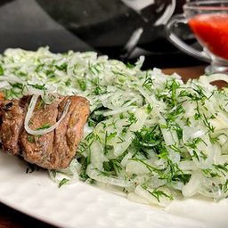 Гениальная грузинская закуска идеально подойдет к шашлыку, да и к любому другому мясу, или даже птице. В основе обычный лук и перец, однако на столе этих простых ингредиентов будет уже не узнать.