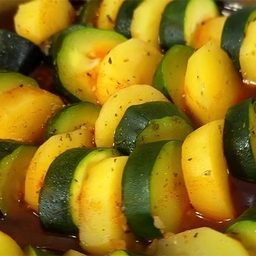 Большое блюдо на семью за копейки. Мясо, картошка и кабачки