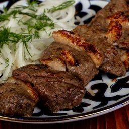 Шашлык — мясо, поджаренное на углях, нанизанное на вертел или шампур. Это блюдо делают в Центральной и Западной Азии, а также в Восточной Европе. Рецепт самый простой: мясо, нарезанное кусками, маринованное в луке, с черным перцем, солью, иногда с зеленью.