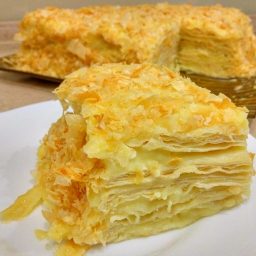 Торт «Наполеон» из слоеного теста с заварным кремом