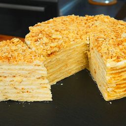 Этот торт не быстр в исполнении, но результат того стоит — «Наполеон» станет главным блюдом на новогоднем столе. Готовим по классическому рецепту с тонкими слоеными коржами и нежнейшим заварным тестом.