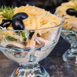 Слоями мясо, грибы, сыр и сладкий перец. Шикарный салат на Новый год
