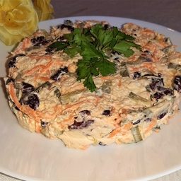 Салат с курицей, сыром и морковью по-корейски простой в приготовлении, сытный и очень вкусный. Все ингредиенты отлично сочетаются между собой.