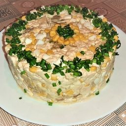 Салат с курицей, грибами и кукурузой готовится легко и просто! Сытный и вкусный салат, отличный для праздника.