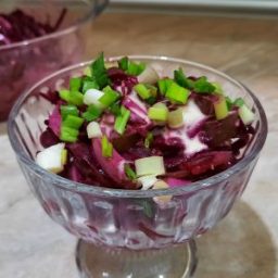 Люблю салаты, в состав которых входит свекла. Сегодня речь пойдет о свекольном салате с интересным сочетанием ингредиентов, да еще и на домашнем майонезе.