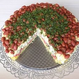 Слоеный салат с сыром, колбасой и консервированной фасолью