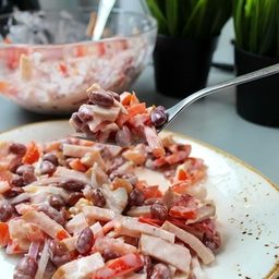 Салат из ветчины и фасоли