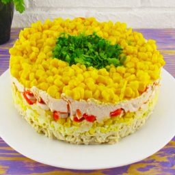 Салат с копченой колбасой и кукурузой – быстрый в приготовлении и вкусный. Ингредиенты, входящие в его состав, прекрасно сочетаются, он отлично смотрится на праздничном столе.