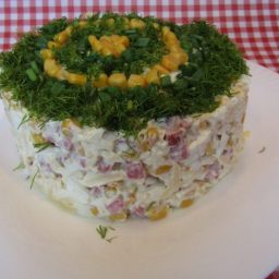 Салат с копченой колбасой и кукурузой