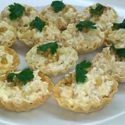 Салат- новогодняя закуска с курицей и ананасами в тарталетках!