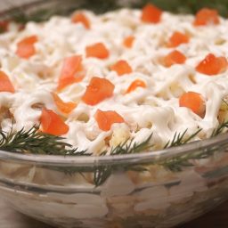 Салат «Балтийский». Необычный, но очень вкусный салат, готовиться легко и быстро и получается очень сочный и вкусный, понравится всем. Подойдёт и к ужину, и на праздничный стол.